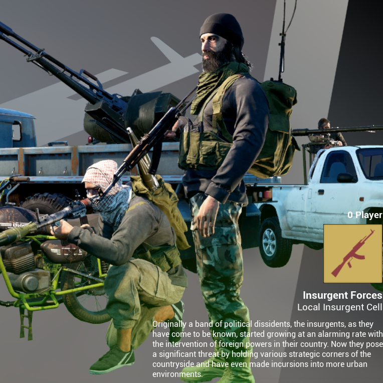 They rely heavily on their armor killers to win fights. Having the BMP-1 and SPG-9 both put them at a disadvantage. This can give the enemy the chance to farm you from a distance with IFVs/Tanks with little recourse if you lose your armor killers. Insurgents must then rely on Anti-Tank Tandems which have a and IED bikes which have a short range. Their SPG-9 (tow equlievant) is hard to aim and can't rotate 360 degrees.